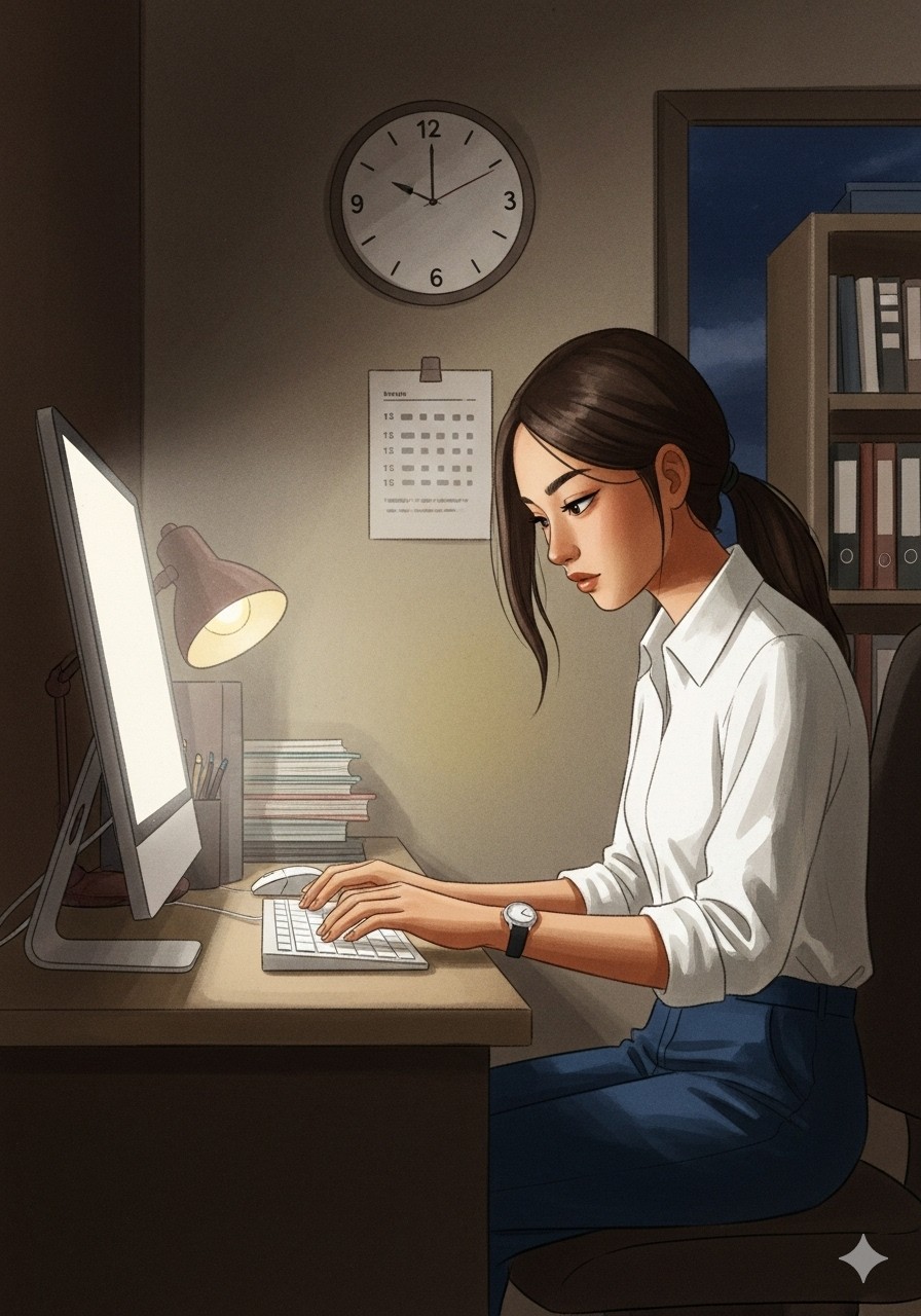 “Lại là những báo cáo này,” Anaya lẩm bẩm. Cô dành hàng giờ để sao chép, dán, và kiểm tra lại từng con số. Thời gian trôi qua, đồng hồ điểm khuya, nhưng công việc thì dường như không bao giờ kết thúc.